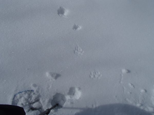きつねの足跡、冬のアニマルトラッキングは、冬登山の楽しみですね。