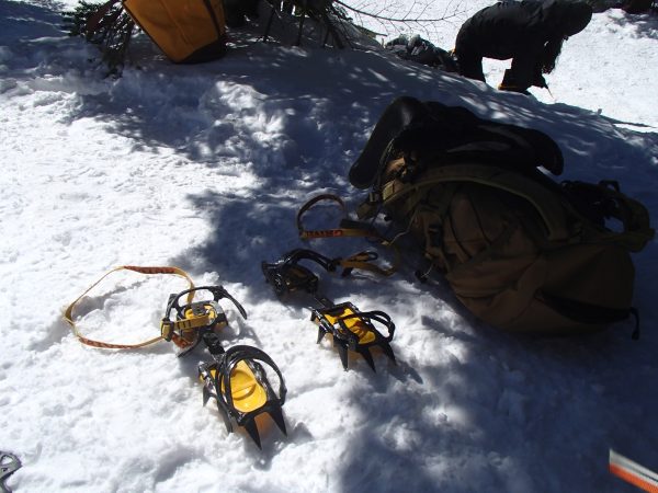 積雪がどれくらいあるのか確信が持てなかったのですが、登山者が多いことから、今回はアイゼンのみ使用。六本歯のアイゼンでも十分と感じました。